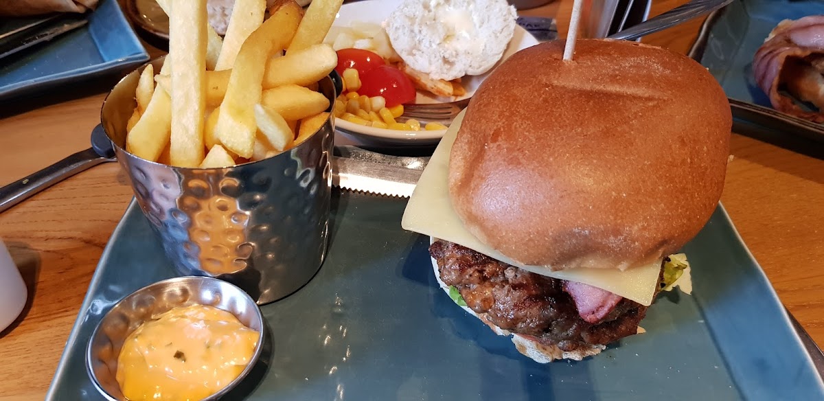When it comes to the food, this place really shines. Whether you're in the mood for a hearty Full English Breakfast, a delicious Sunday Roast, or a classic Scampi and Chips, there's something to satisfy every craving. Don’t miss out on the famous Salad Cart, a highlight for anyone looking to add fresh, crisp veggies to their plate. If you prefer something indulgent, the Southern Fried Chicken Burger, Dirty Bird Burger, or BBQ Chicken Stack are absolute must-tries. For those who love seafood, the Surf and Turf is a delectable choice. And for dessert? The Salted Caramel Profiterole Sundae or the Apple Pie are perfect for satisfying your sweet tooth.